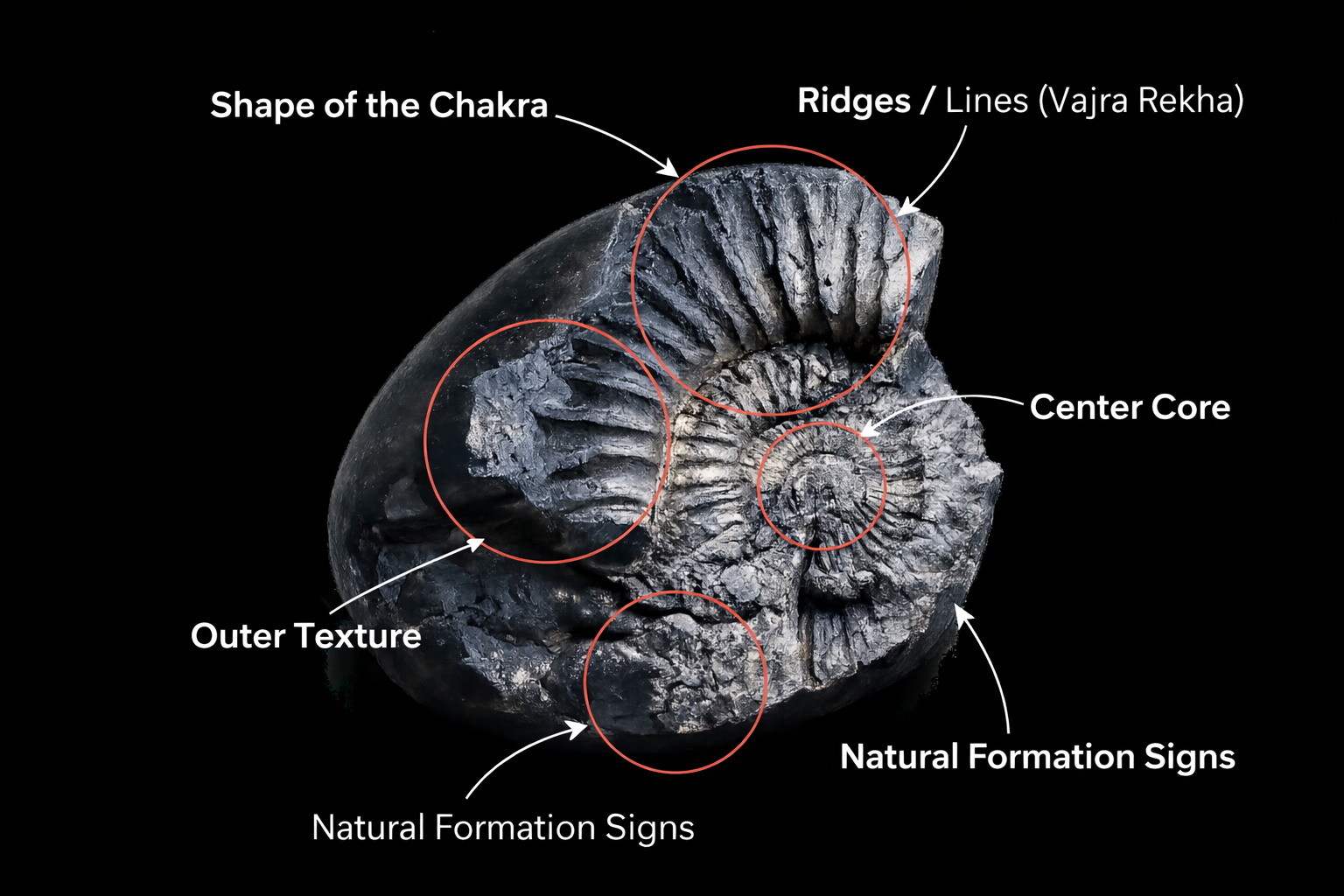 This type of Shaligram is found in the Kali Gandaki River region of Nepal and is formed from ancient ammonite fossils over millions of years. The presence of the Sudarshan Chakra symbolizes protection, balance, and the removal of negative energies.